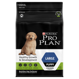 PRO PLAN Puppy Large Breed Formula with OPTIstart is a highly palatable and digestible super premium dog food. It helps promote optimal development of strong bones, joints and muscles for large breed puppies and also has a bigger kibble size. This stimulates chewing and helps prevent a build up of plaque and tartar and bloating in large breed puppies. This formula is fortified with high quality proteins (28%) and fats (13%) from real chicken as the #1 ingredient, and rice as the main source of carbohydrates.