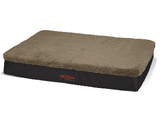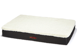 Brilliantly clever (kudos to NASA!) memory foam tops the thick inner of this bed. It really needs to be felt to be believed but moulds beautifully to the contours of a dog's body ensuring all over, even support. Its low impact, dampening effect makes it ideal for older dogs, big or heavy dogs & dogs with joint problems. The wrap around zip makes the fully washable cover so easy to get on & off AND gives you the option to interchange tops between the black, water resistant, 600 denier, PU coated ripstop & the fluffy mock lambswool.