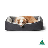 Our new Australian Made Snuggler Chinchilla adds a touch of luxe to the modern home. Finished in upholstery grade two-tone fabric and dark grey toned plush faux fur that lines the entire interior of the bed. Super comfort orthopaedic support foam cushions the base providing the perfect stable base for younger and older dogs alike, while the soft filled bolstered sides add protection and comfort to calm your pet.